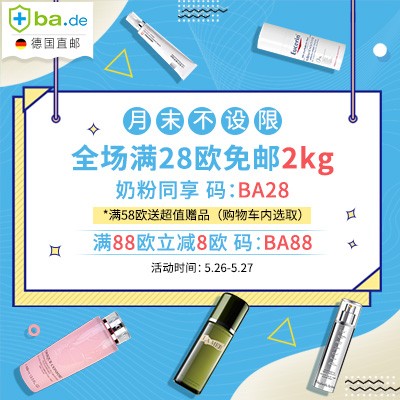 【德国BA】全场满28欧免邮2kg+满58欧送赠品+ 满88欧立减8欧