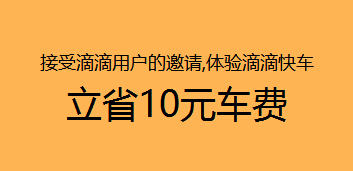滴滴快车新用户立省10元车费现金券