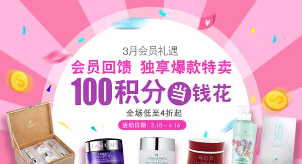 温馨提示:使用优惠券前请仔细查看优惠券使用说明,优惠券需要在有效期内使用!莎莎於1978年成立,从最初面积仅40平方呎的零售柜位,发展成为亚洲区居领导地位的化粧品零售集团,根据「Retail Asia」杂志、毕马威会计师事务所及Euromonitor 2011年「亚太区首500家零售商」排名,莎莎现为亚洲最大的化粧品连锁店,亦为香港十大零售集团之一。莎莎在亚洲独家代理逾100个品牌,为香港最大的化粧品代理商之一。 - 莎莎网3-4月会员回馈,积分当钱花低至4折起: