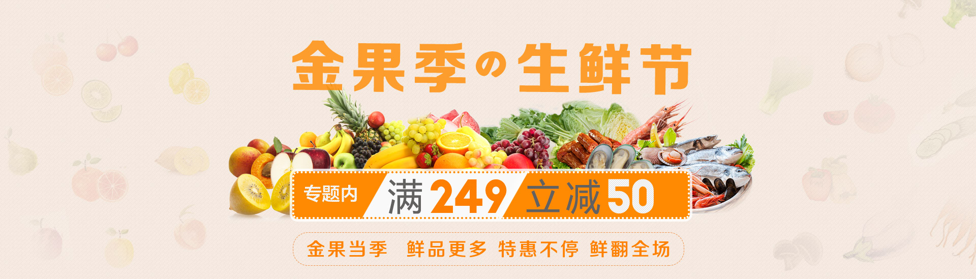 - 本来生活金果季生鲜节,满249-50优惠券: