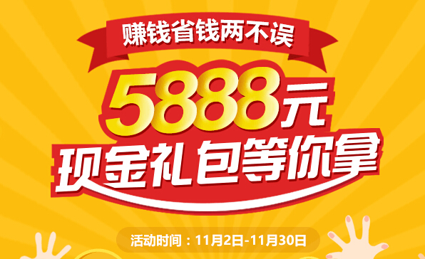 2015年11月2日-2015年11月30日期间,使用超嘀折到合作商户消费,送合时代金融优惠券,吃多少,送多少,最高送5888元优惠券礼包。