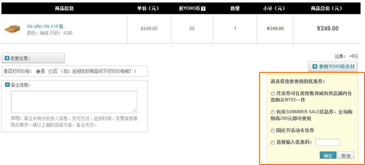 4、在提示框填入汕头生活网免费领取到的:YOHO! 有货网优惠券代码;