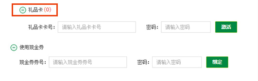 1.礼品卡 仅适用于网上订购,下单时填写卡号和验证码即可抵扣相应的金额。如果您的礼品卡 已存入您的账户,您可直接选择已有的礼品卡来使用。