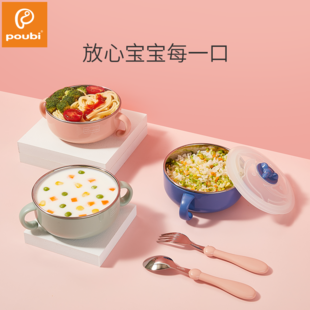 poubi宝宝不锈钢双层辅食碗儿童餐具