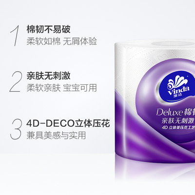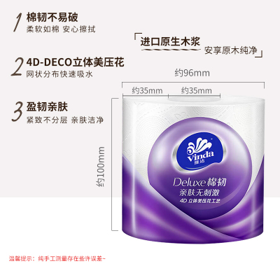 维达超韧卷纸无芯卫生纸3层70g36卷