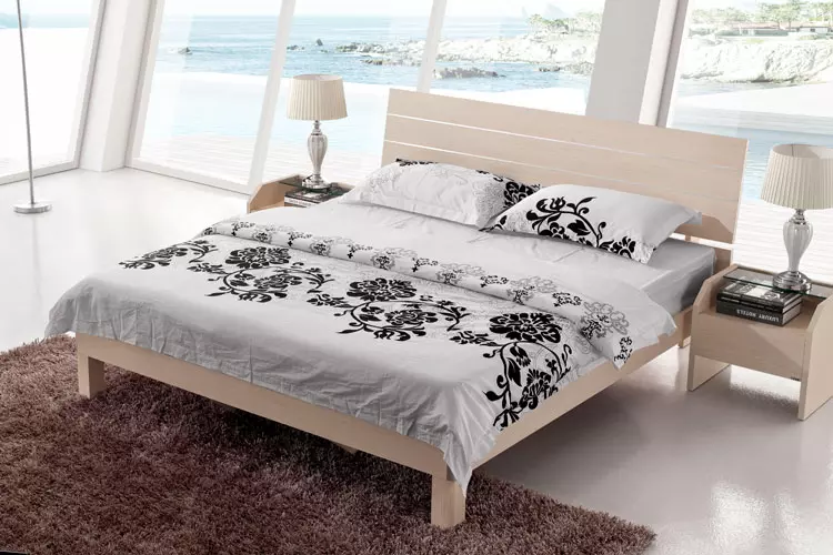 - 现代简约 白枫色 实木颗粒板双人大床 1.8*2.0米¥910