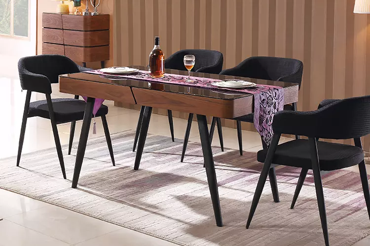 - 现代简约 黑胡桃色 高密度板 餐台¥1940