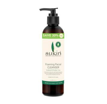 Sukin 天然植物泡沫洗面奶,这款温和的洁面乳含有黄瓜、芦荟及纯植物油,野玫瑰果,荷荷巴油和鳄梨等纯植物精华,可以温和地洁净皮肤,卸妆和去除杂质,含有维他命E和黄金菊,用后肌肤倍感干净、柔软和清新;适合中干性、混合型及敏感皮肤。