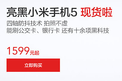 小米商城:小米手机5现货购买1599元起