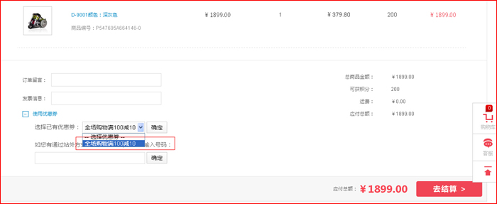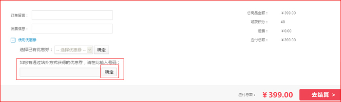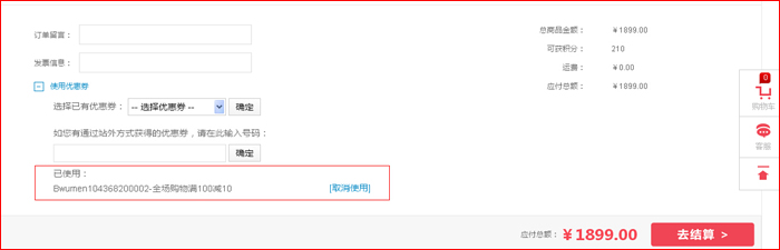 2、优惠码输入时请注意大小写且不能有空格存在。