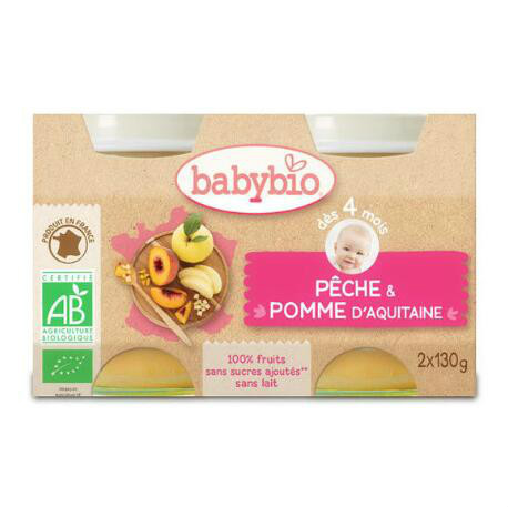 babybio伴宝乐婴儿辅食 有机水果泥 蜜桃苹果口味130g*2适合4个月
