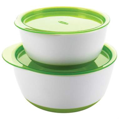 【商品介绍】OXO 奥秀盖碗套装(大小碗各一个),小碗容量150ml,大碗250ml。适用于6个月以上的宝宝,可以给宝宝作为用餐餐具,或储存食物食盒或零食碗。碗内部的直壁设计,让宝宝可以更容易舀出食物。稳固、防滑底座设计防止餐碗打翻。带盖小碗可以保证食物新鲜并不易洒出。不含双酚A(BPA),不含领苯二甲酸,不含PVC。可微波加热。