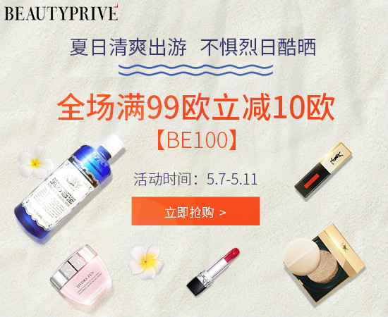 Beautyprive中文网夏日清爽出游:全场满99欧立减10欧