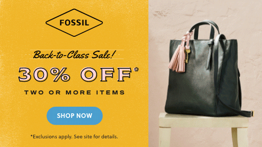 - 【Fossil】Back-To-Class 活动,2件及以上商品享7折优惠!