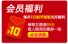 - 跨境淘10元优惠券,满99-10跨境淘优惠券【每月1日领取】: