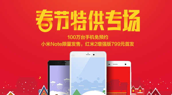 小米春节特供专场,红米2立即购全场配件6折起