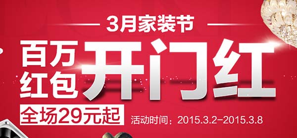 - 1号店家装节开门红,百万现金红包: