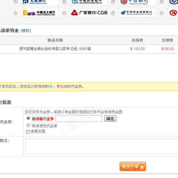 3)在核对订单信息页面中选择“使用代金券”即可。