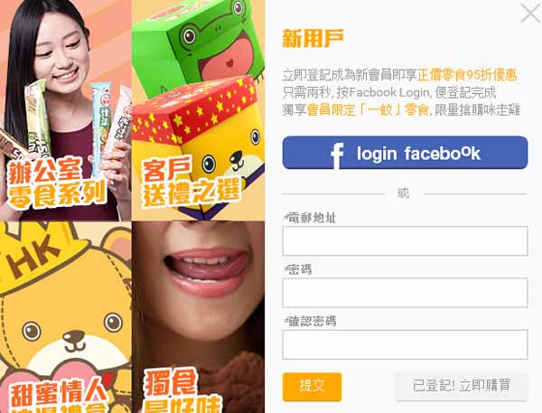 立即登記成為新會員即享正價零食95折優惠,獨享會員限定「一蚊」零食, 限量搶購咪走雞!