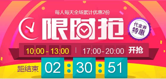 2、领取的券请在120分钟内使用,120分钟后会在当前页面显示,请珍惜每张优惠券!