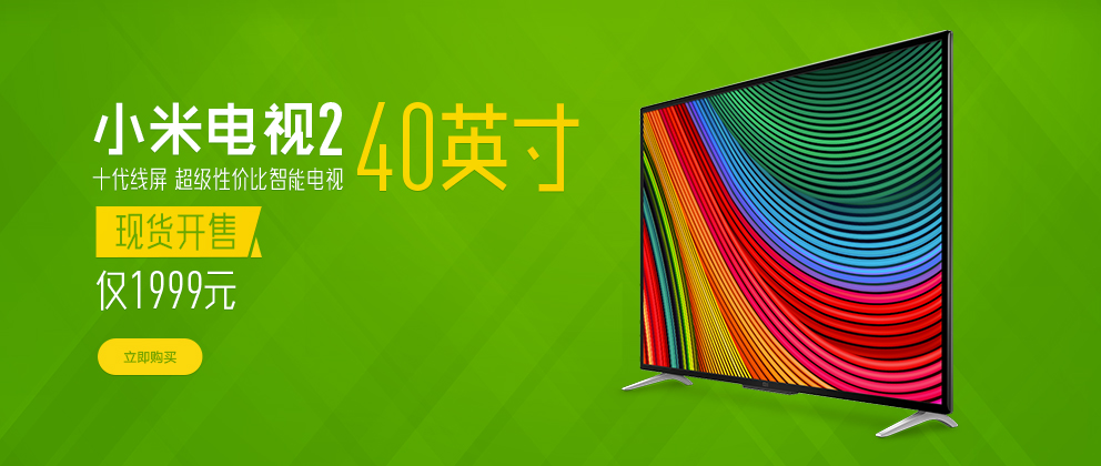 - 小米电视2现货开售,¥1999元小米电视2开放购买:
