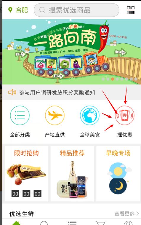 顺丰优选优惠券,app摇一摇领200-30元顺丰优选优惠券