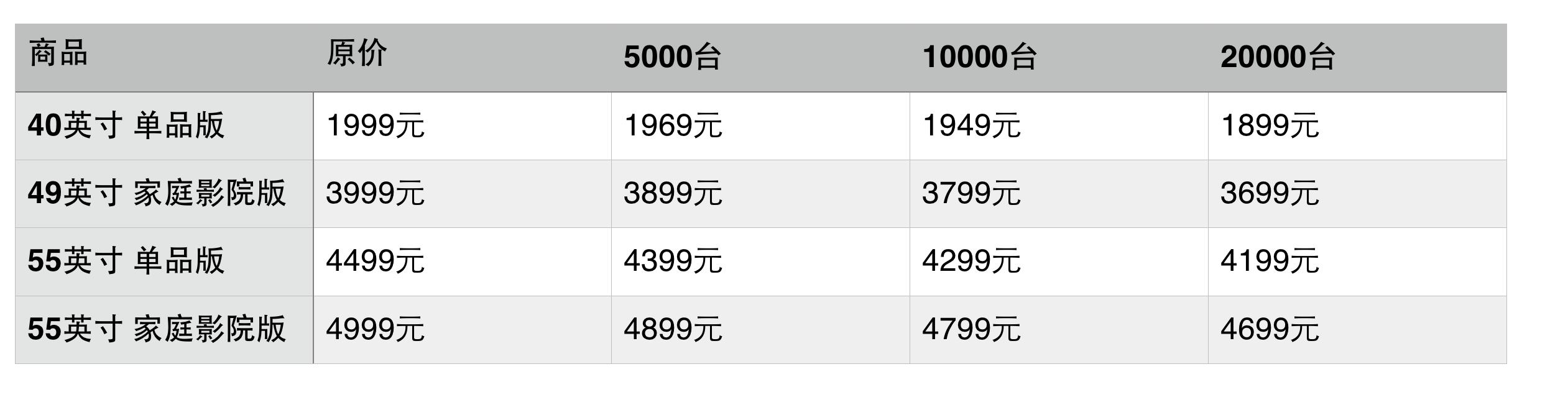 4/ 同一个小米账户,同个型号的电视限团购3台。