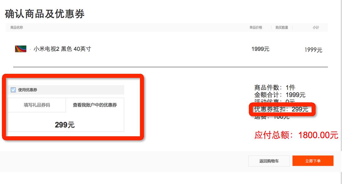 6月18日当天再返回活动页面交付相应尾款,即可完成订单,以最低价抱走小米电视2 。