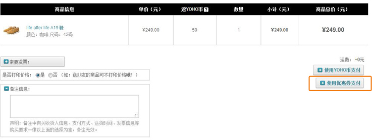 1、使用范围:此券在【YOHO!有货】http://www.yohobuy.com/上购物使用;