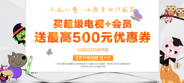 1、买超级电视+会员送最高500元优惠券 12月1日10点开启