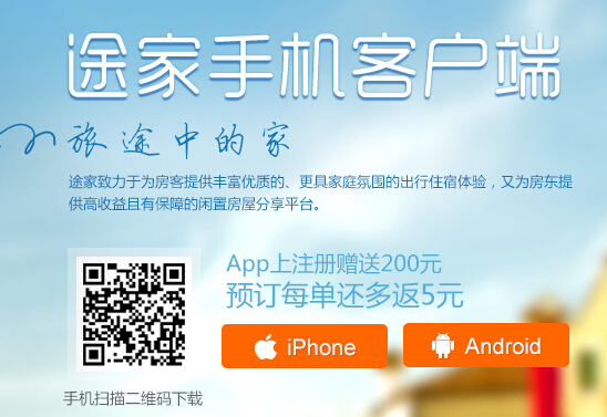 - 途家网APP优惠券:注册送200元+手机预订返5元现金券: