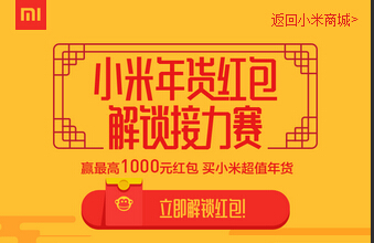 - 小米年货红包,玩游戏赢1000元小米年货红包: