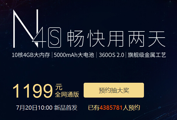 360手机商城最新款N4S官网首发+预约抽大奖