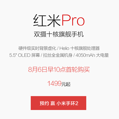 小米商城预约红米Pro抽奖送小米手环2