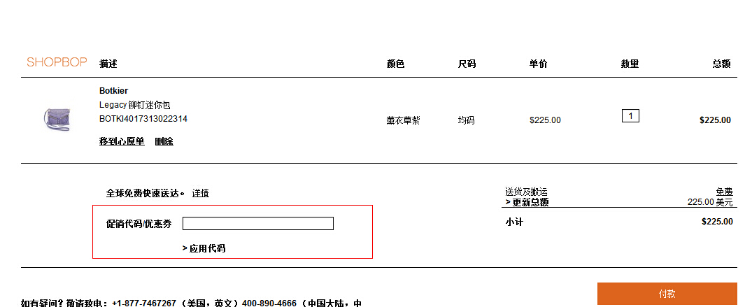 Q : Shopbop优惠码使用帮助