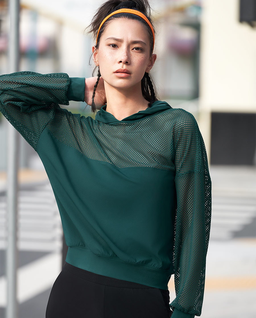 爱慕运动早秋风尚II休闲镂空套头帽衫AS144H21
