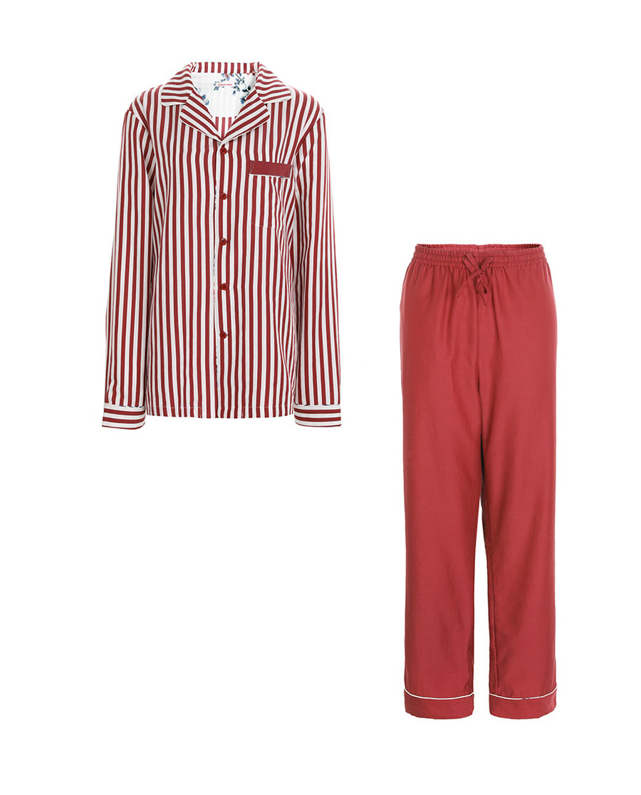爱慕家居彤漪蔷薇男士翻领长袖分身家居套装AH460621