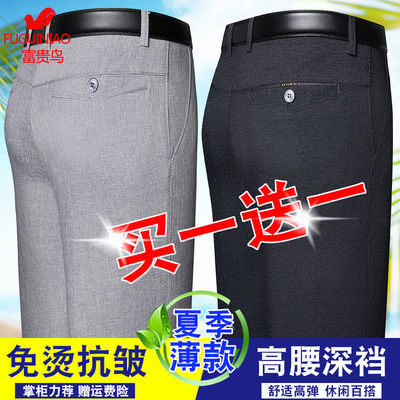 富贵鸟春夏季薄款男士西裤2020新款中老年休闲裤直筒免烫老爹长裤