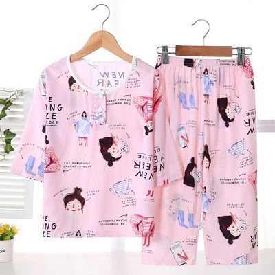 夏季儿童绵绸睡衣套装薄款男孩女童空调服卡通七分袖中大童家居服