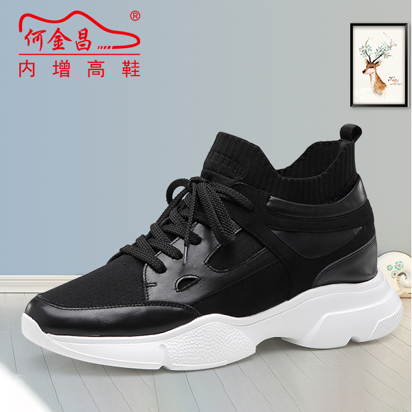 【何金昌】黑色男士休闲运动鞋增高7cm