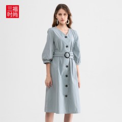 2019夏装新品女时尚韩版排扣收腰衬衫裙 甜美裙女¥99.00 -