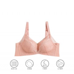 厚A杯无钢圈文胸 云感棉性感拼接蕾丝聚拢内衣¥79.00