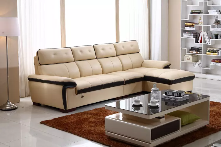 - 现代简约 米黄色 头层真皮沙发 1+3+贵(坐下右)¥17959
