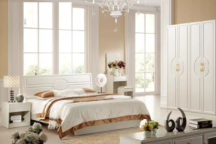- 现代简约 白色 吸塑工艺无油漆环保 卧房套装三件套(1.5米床+床头柜+衣柜)¥6100